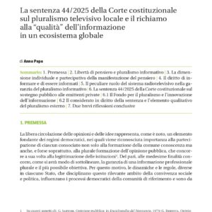 La sentenza 44/2025 della Corte costituzionale sul pluralismo televisivo locale e il richiamo alla “qualità” dell’informazione in un ecosistema globale