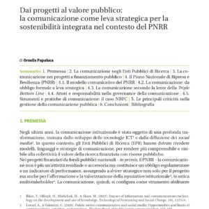 Dai progetti al valore pubblico: la comunicazione come leva strategica per la sostenibilità integrata nel contesto del PNRR