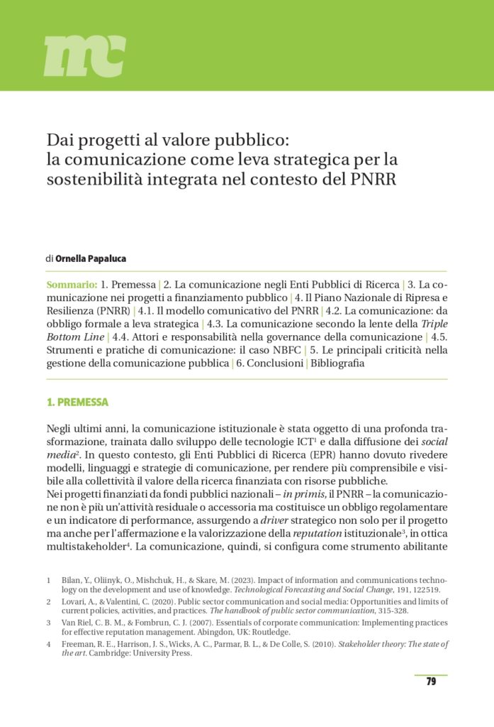 Dai progetti al valore pubblico: la comunicazione come leva strategica per la sostenibilità integrata nel contesto del PNRR