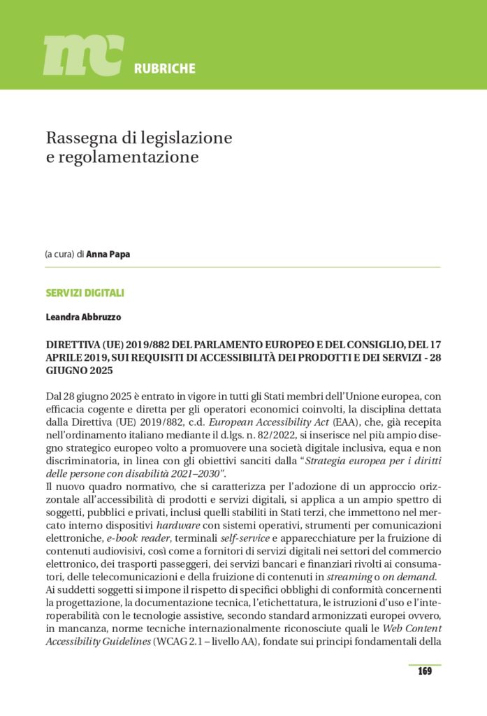 Rassegna di legislazione e regolamentazione